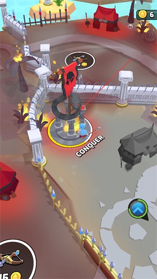 4、操控角色向目标区域移动,完成对该区域的占领,触发CONQUER标识,以此达成当前关卡的相关目标。