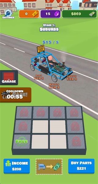 1、购买赛车部件并进行组装,同时积累收益资源,这是构建赛车基础形态的核心操作,能为后续的竞速比拼与部件升级做好前期铺垫。