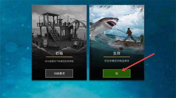 1、选择【生存】模式,点击【玩】进入关卡,在该模式下体验海洋生存的挑战玩法。