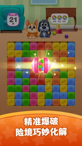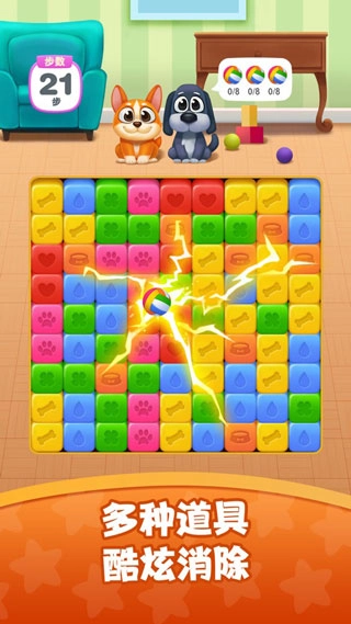 《狗狗消消消》是一款融入全新红包玩法的三消休闲游戏,采用简约的卡通画风。其核心亮点在于拥有趣味十足的三消过程,等待玩家前来体验。