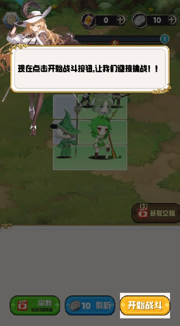 3、点击“开始战斗”即可开启挑战,相同的角色能够合成更高级的角色。