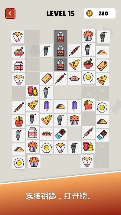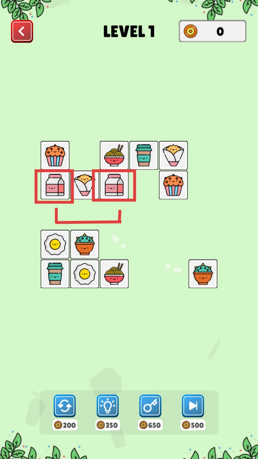 1、进入关卡后,我们需要寻找相同的图案来进行连线消除,在这张图里,让我们点击连接两个一样的【牛奶盒】图案试试看吧。