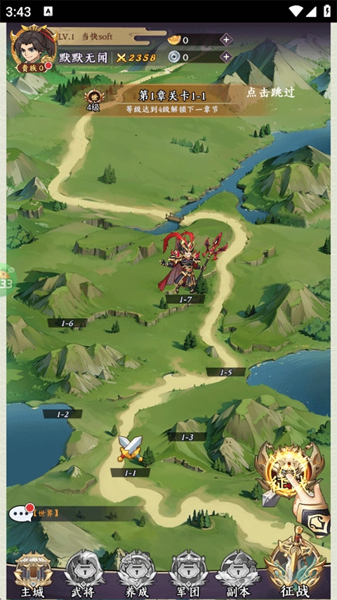 8、给新获取的武将提升等级,之后让他们在后续的关卡里上阵作战;