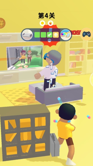 1、进入关卡后,玩家会隐藏在不同的桌椅后方,找准合适的时机点击屏幕,即可对敌人展开整蛊操作。