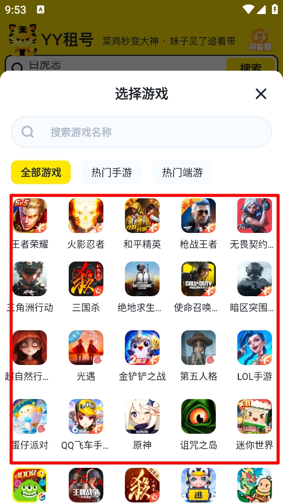 4、根据游戏选择相关的游戏账号。