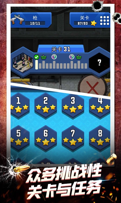 保险,上膛,逼真的设计体验,一系列简明的操作让你体验到射击的乐趣。