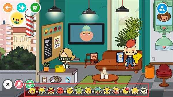1、在室内场景里,可借助下方的表情栏挑选表情,以此为角色切换多样的情绪状态,增添互动的趣味性。