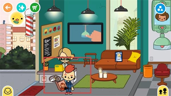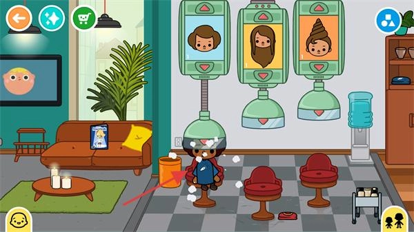 4、挑选对应理发椅旁边的发型装置,给角色更换发型,感受装扮类的互动玩法。