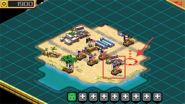 4、当触发【横冲直撞】这类特效时,要集中火力攻击敌方较为密集的目标,与此同时去占领敌方基地(即红色箭头所指的位置),以此达成关卡的目标。