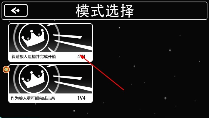在模式选择界面,选择躲避狼人追捕并完成开箱的模式,进入对应的太空场景后即可开始游戏。