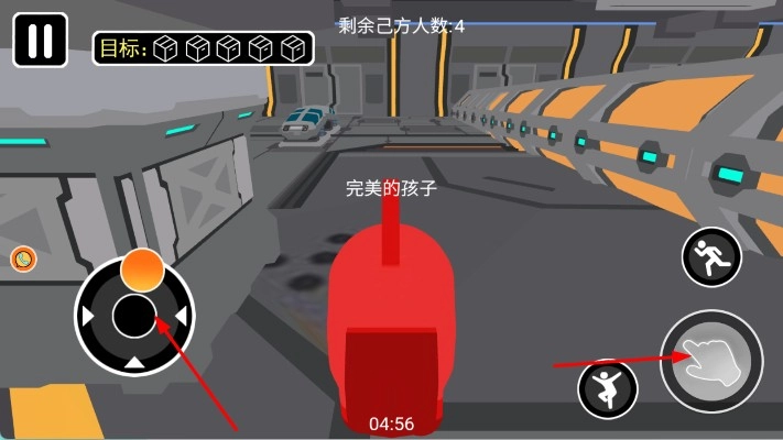 在游戏场景里,你可以借助虚拟摇杆来操控角色移动,以此躲避狼人的追捕;右侧的按钮则用于进行互动操作,你的任务是完成开箱目标。当成功达成任务、挑战胜利后,点击相应按钮就能继续游戏。