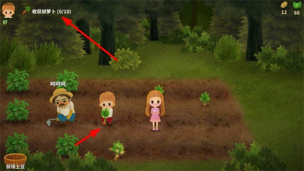 4、当完成收获土豆后就会进入胡萝卜的收获进度。