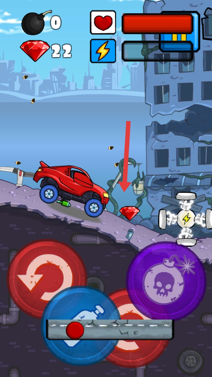 驾驶时要留意路面上的红色钻石标识,及时收集这些钻石,它们能在之后用来解锁新车辆,或是在游戏开局时购买道具。
