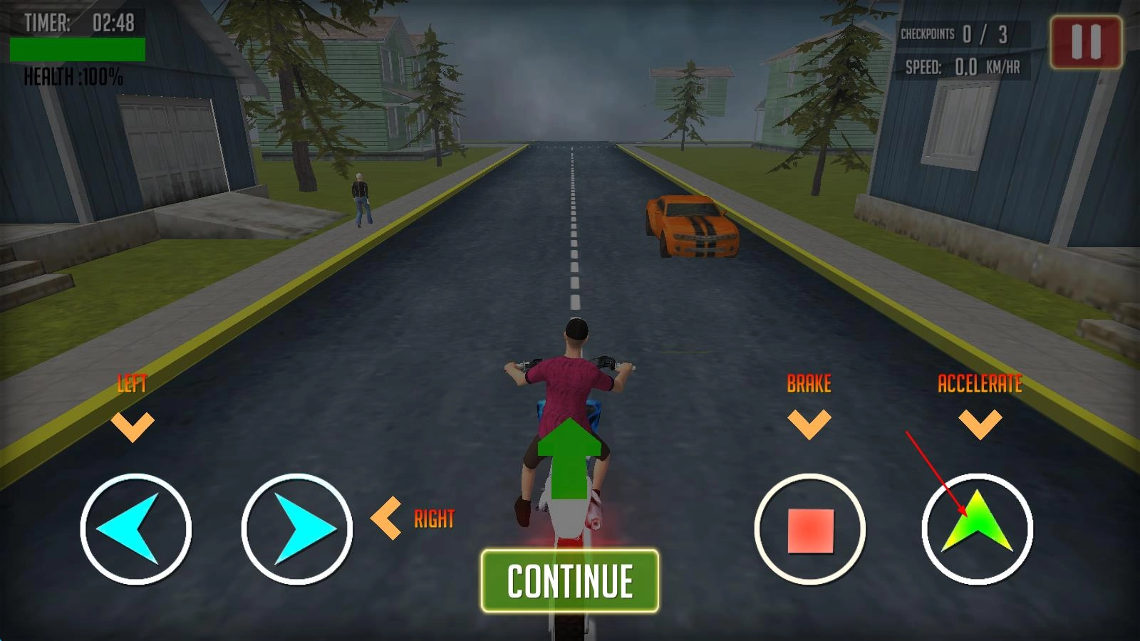 开启死亡骑行挑战,挑选你钟爱的自行车或其他车型,点击启动按钮踏上旅程,操控方向避开前方第一个避雷针,从此正式开启这场冒险之路。