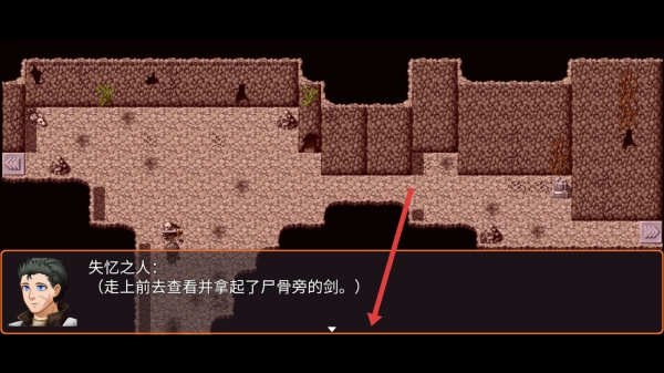 在探索场景的过程中,当遇到像尸骨旁的剑这类能够互动的物品时,靠近并触发对话后就能得到对应的道具,从而增强自身的生存能力。