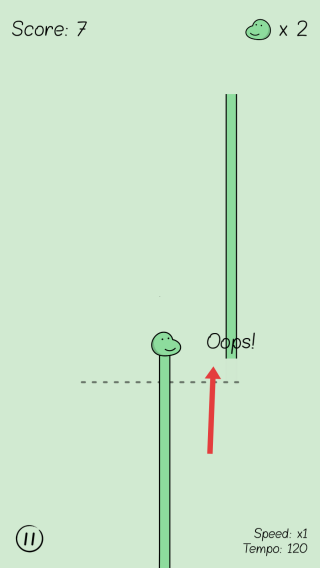 2、继续游戏,按箭头指向操作,虽出现“Oops!”提示,但仍维持分数(Score:7)。