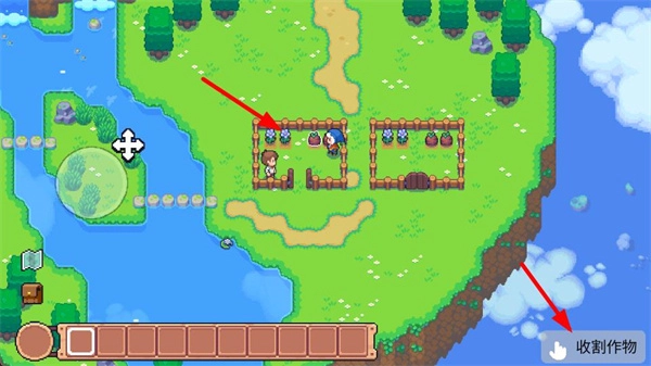 2、当抵达农田后可以点击来收获农作物;