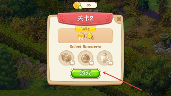 1、点击绿色【游戏】按钮,进入关卡的核心操作键。