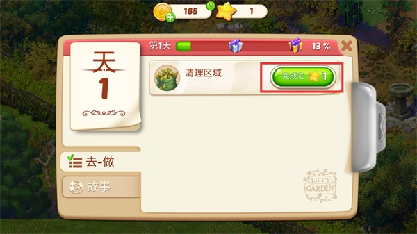 4、首日任务界面的核心任务是【清理区域】,请点击红框标注的【完成它】按钮。