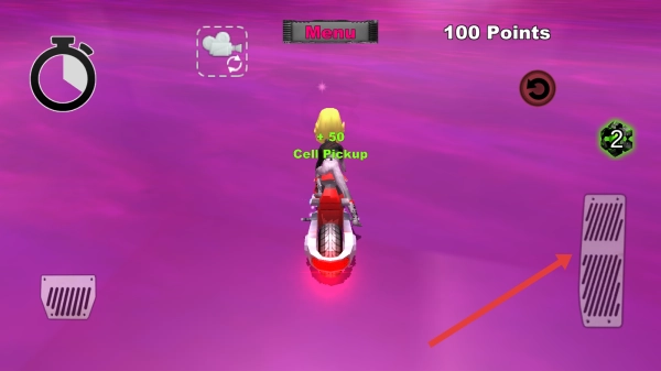 当看到绿色文字显示的Cell Pickup道具时,靠近并拾取它来积累分数,同时要时刻留意上方的Points计分区域,借助加速功能快速通过彩色路段。