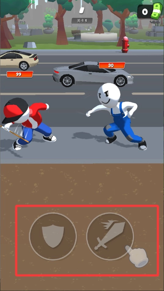 战斗阶段时,左手点击防御键来抵御伤害,右手同时按下进攻键进行输出。留意敌人的动作,提前预判其攻击节奏。