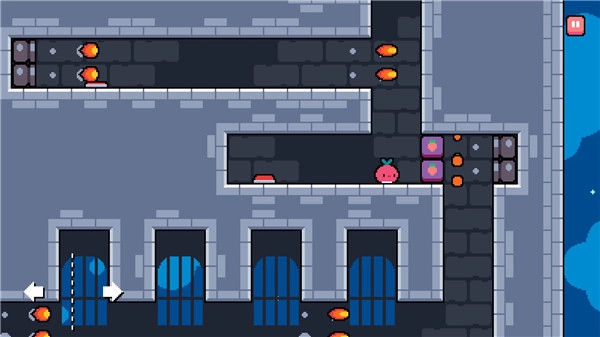 进入第一关后,下图呈现的是详细的操作界面,左下角的按钮为左右方向键,右侧屏幕区域则是跳跃键。