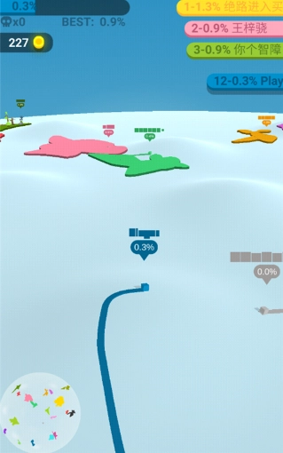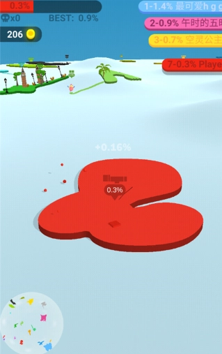 2、借助灵活的走位与策略性操作圈出更广阔的领地,持续扩大你的颜色范围,赢得比赛以获取丰厚奖励。
