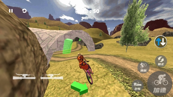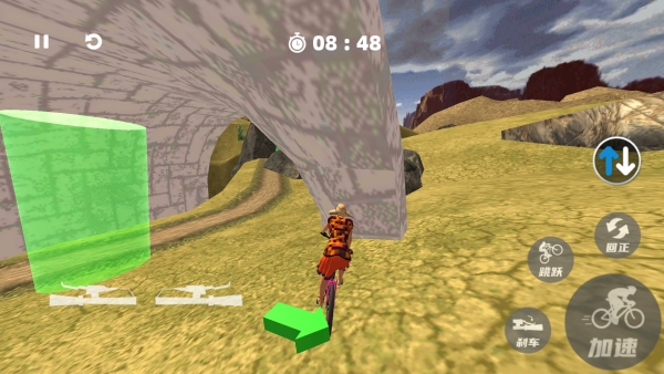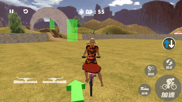 按照箭头的指示,操控自行车的方向,持续骑行至目标位置。