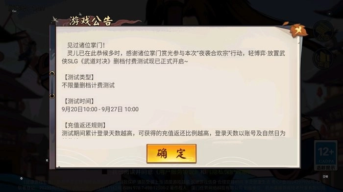 测试期间累计登录天数越多,能得到的充值返还比例就越高,登录天数按账号和自然日来……点击确定按钮。
