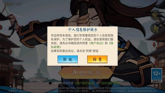欢迎来到本游戏!我们高度重视您的个人信息与隐私保护。为保障您的个人权益,在使用我们的服务前,请务必仔细阅读并同意《用户协议》和《隐私政策》。若您同意上述协议,请点击“同意”按钮。