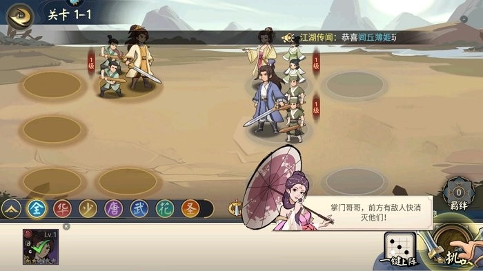 掌门哥哥,前面出现敌人了,快把他们消灭掉!就像图里展示的那样,点击右下角的挑战按钮就能展开对决啦。