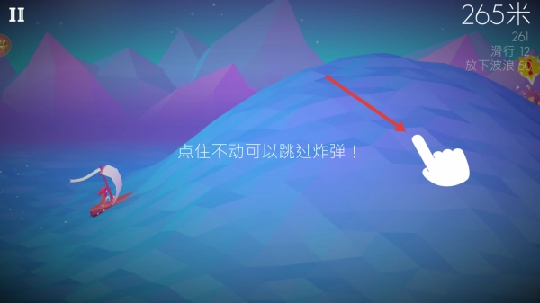 当遭遇炸弹时,按照提示长按屏幕保持不动即可跳过,以此确保帆船安全,继续推进完成这场海上冒险。