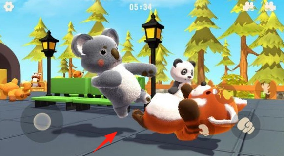 趣味对抗玩法中,点击拳套按钮即可开启与熊猫、小熊猫等其他动物的近战对决,通过推挤、抓取对手等方式展开互殴,将对手淘汰出局。