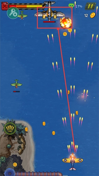 2、视觉呈现效果亮眼,依托竖版射击的独特视角,打造出史诗级的空战画面,使玩家沉浸式体验激烈空战的震撼氛围。