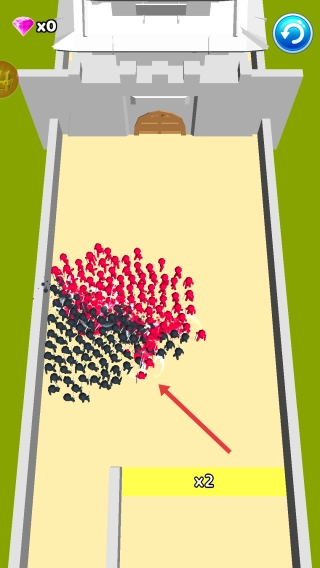 在游戏里指挥士兵移动,让他们穿过不同的倍数区域,以此来提升士兵的数量。