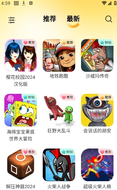 用户可以从首页的推荐页面以及最新页面中,挑选那些最新最热的游戏来开始游玩。