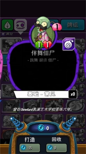 “疯狂”系列卡牌在战斗里主要负责增强输出能力,可选的有盗墓僵尸、僵尸好伙伴和太空忍者这几张。尽管可选范围不算大,但它们的实战效果相当强悍:盗墓僵尸能凭借技能规避敌方伤害,僵尸好伙伴可通过自身能力强化周边队友,太空忍者则能对植物英雄发起偷袭。