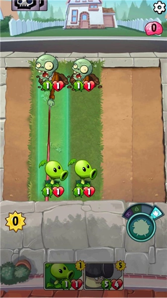 1、进入游戏关卡后,玩家只需拖动下方的植物卡牌(例如豌豆射手,其生命值为1点)即可。