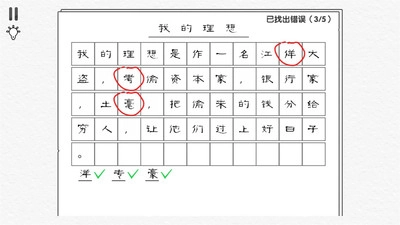 涵盖了常见的易错字情况,玩家要仔细检查每一个文字,每个笔画都不能出错,快速找出所有错别字。