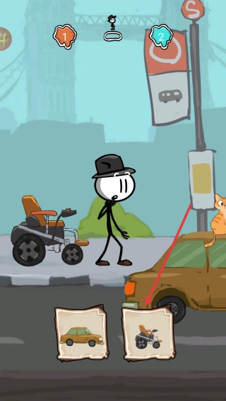 点击屏幕即可开启关卡,选择轮椅等载具后,需观察场景中的汽车、路牌等障碍,进而规划移动路线。