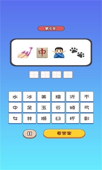 3、关卡按难度递进,初期表情组合直接,后期表情更抽象,需多层联想,玩家将要经历各种复杂的挑战。