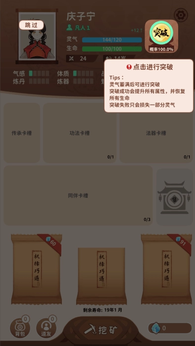 卡包修仙最新版是一款轻度肉鸽修仙模拟游戏,其玩法简洁易上手,每一次轮回都能带来全新的故事体验。