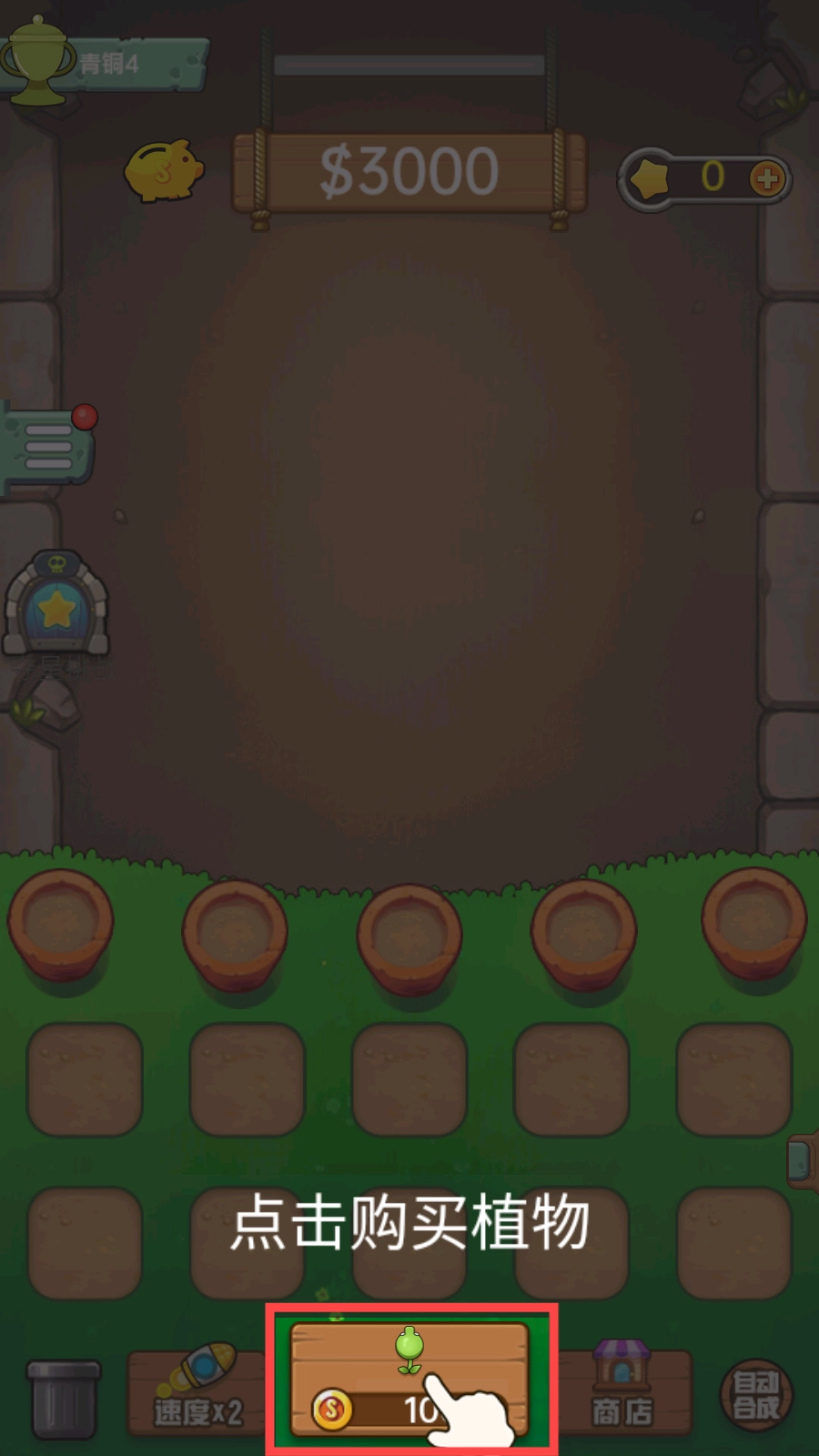 进入游戏后,点击底部带有金币标识的植物图标,花费金币购买基础植物,以此为抵御丧尸做好准备。