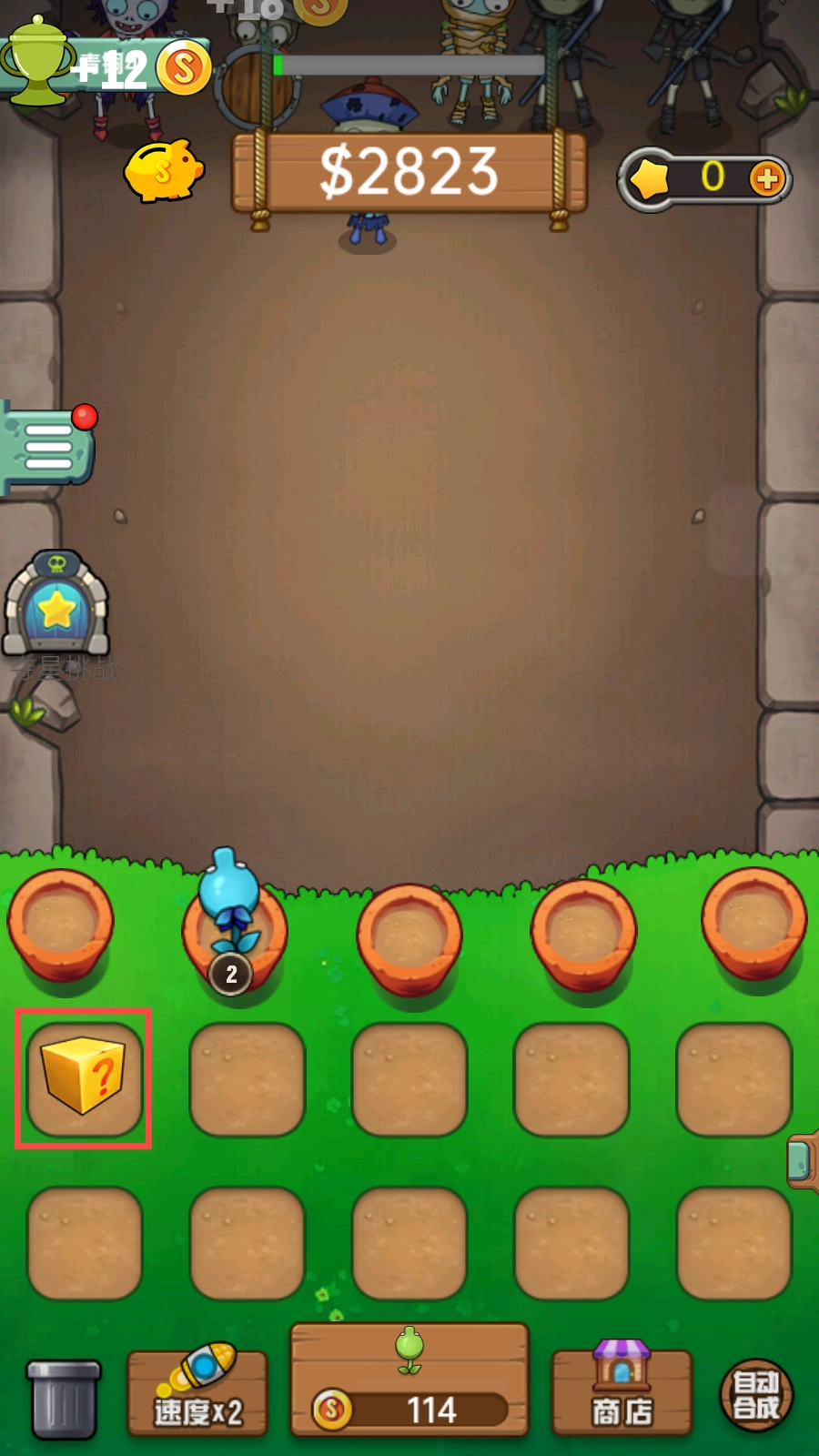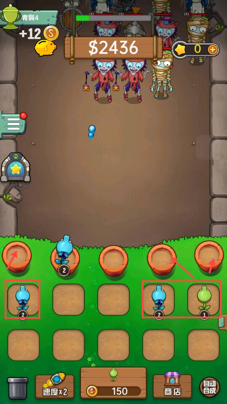 战斗时,只有把植物种在花盆里,才能参与战斗,而且要优先合成高等级的植物,全力以赴抵挡丧尸的进攻。