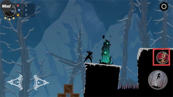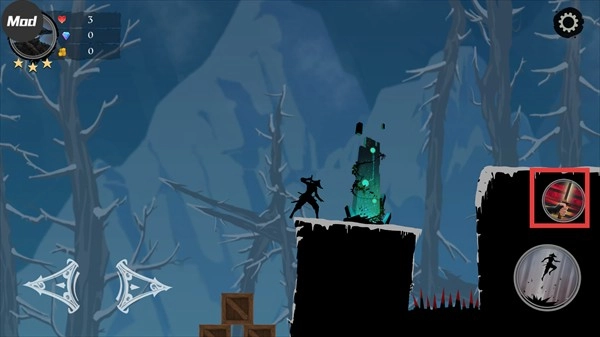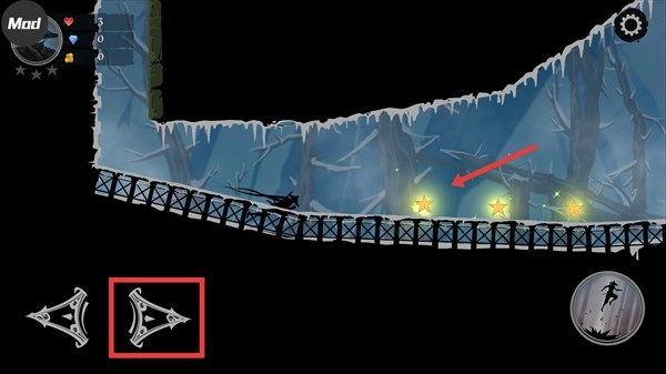 2、通过【向右按键】调整位置,再搭配【跳跃按钮】让角色跃起,即可顺利到达高处平台。