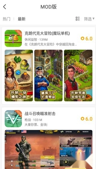 在首页点击“MOD版”选项,然后从中挑选你想要的游戏。