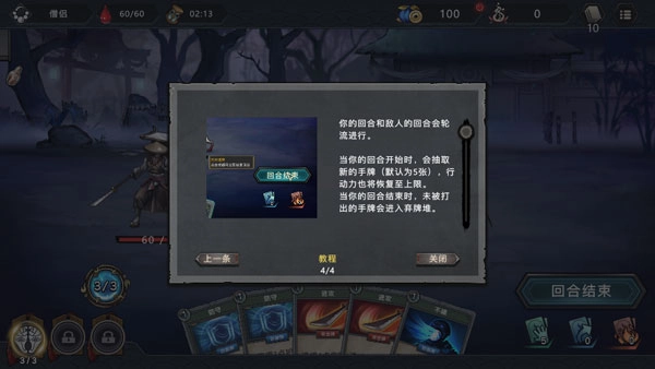 你的回合与敌人的回合会交替进行。每当你的回合开始时,你会抽新的手牌(默认数量是5张),同时行动力也会恢复到最大值。而当你的回合结束时,那些没被打出的手牌就会进入弃牌堆。