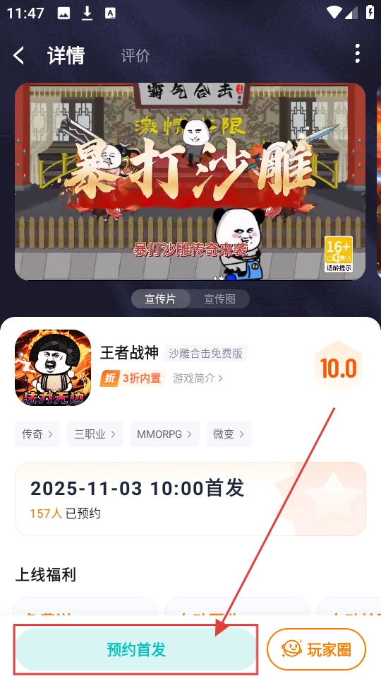 3、进入游戏详情页面后,点击【预约首发】按钮,即可完成该游戏的预约,这样就不会错过游戏上线的消息了。