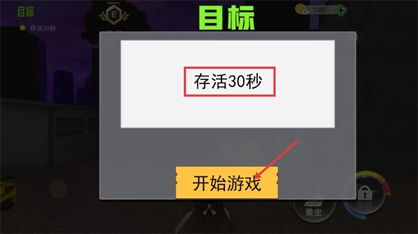 1、本关卡的核心任务是【存活30秒】,点击【开始游戏】按钮就能进入生存挑战环节。