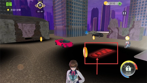3、当目标升级为【存活1分钟】后,靠近【红色道具】就能获得增益效果,从而帮助延长生存时间。